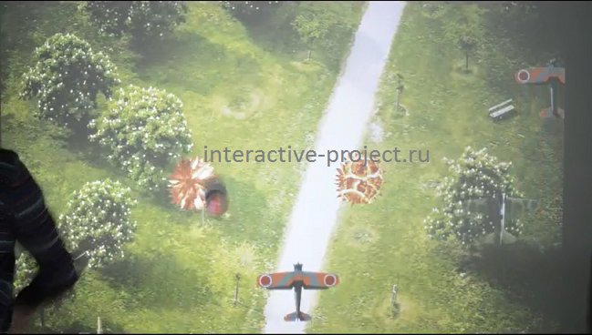 Интерактивный тир для детей выполнен в виде безобидных игр, не имеющих сцен насилия и крови. Интерактивный тир не требует высокой точности попадания в изображение, дети и взрослые могут вместе без ограничений количества участников бросать мячи и другие подобные вещи в изображение интерактивного тира. Программы самостоятельно меняются по временному циклу, заданному вами или можно поставить постоянно работающей только оду игру.