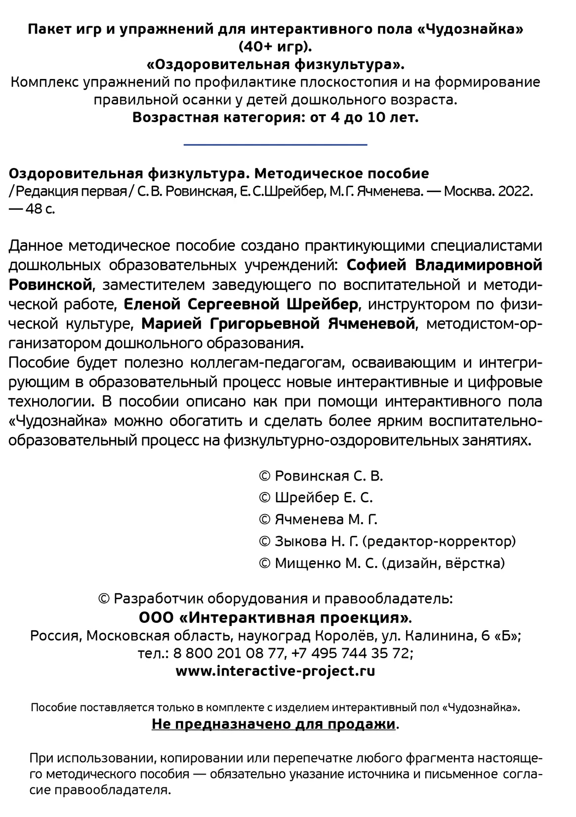Техподдержка Интерактивный комплекс Оздоровительная физкультура